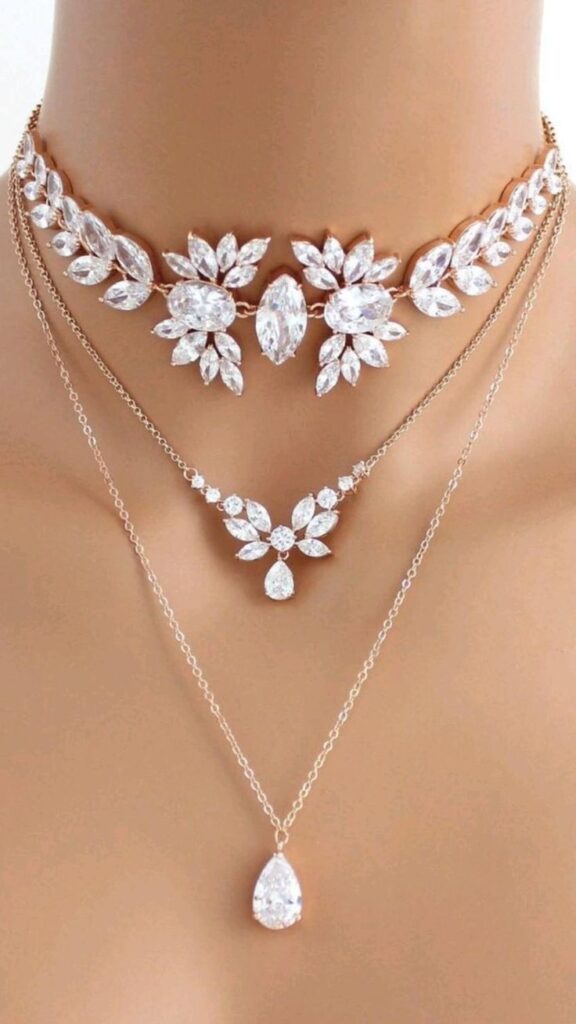 - Mix different lengths β a choker, a medium chain, and a longer pendant.